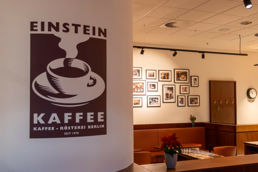 Am Standort Südkreuz heißt Einstein Kaffee seine Gäste mit ausgewählten Kaffeespezialitäten aus eigener Röstung willkommen. Ergänzt durch feines Gebäck und kleine Speisen bietet der Standort einen stilvollen Ort für eine kurze Auszeit oder einen hochwertigen Genussmoment auf dem Weg. Qualität, Sorgfalt und zeitgemäße Kaffeekultur stehen dabei stets im Mittelpunkt.